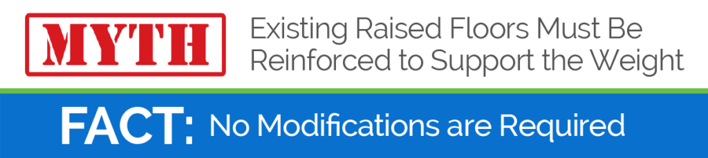 Actually, liquid-immersion cooling eliminates the need for raised floors entirely. However, if you already have a raised-floor infrastructure, there’s no need to remove it, reinforce it, or modify it in any way. ICEraQ immersion-cooling systems can be installed on virtually any solid floor.
