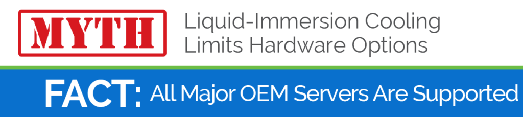 Nothing could be further from the truth. GRC’s ICEraQ and ICEtank™ systems support rack-based servers from all major OEMs – Dell, Supermicro, HP, Cisco and many others. These servers only require fan removal before submersion.
